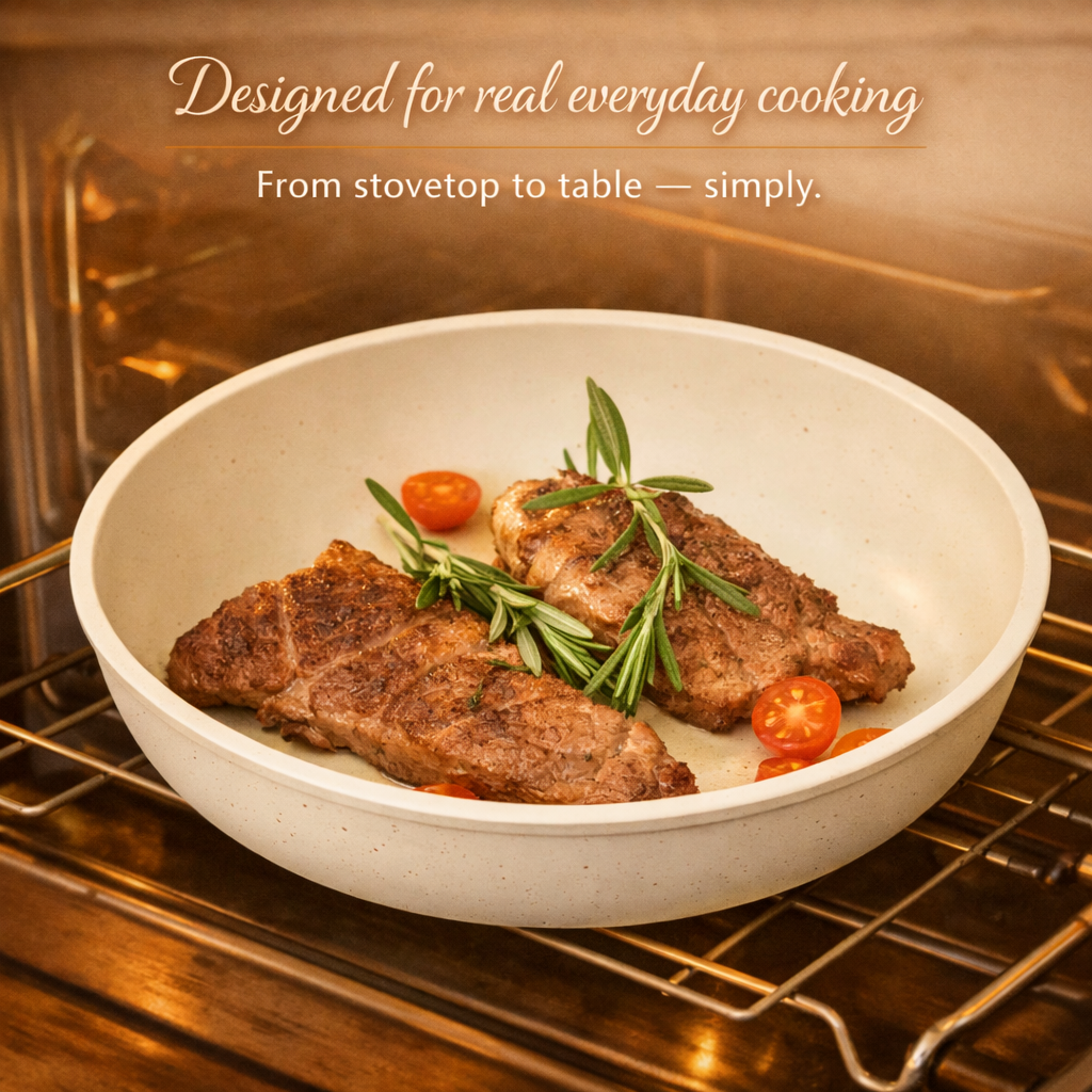 With its smart detachable handle and stackable design, you get full-size performance without the clutter. From quick breakfasts to slow family dinners, everything cooks evenly, cleans easily, and stores neatly.