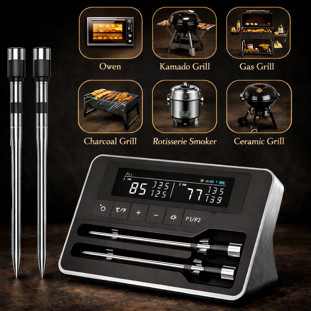 Thoughtful Probe Design – Helps keep meat juicy and evenly cooked